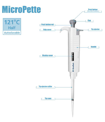 MICRO PIPETTE SINGLE CHANNEL ADJ. 2-20 UL. (EACH)